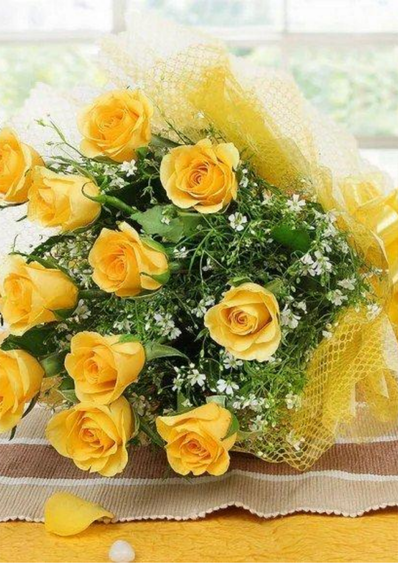 Yellow roses represent friendship, life, energy and that the person is totally mad in love. Have a look at this amazing bouquet, consisting of yellow roses wrapped elegantly in cellophane and adorned with a ribbon bow. The appearance and fragrance of yellow roses are sure to entice the one who receives it as a gift. You can also order this bouquet for yourself in order to decorate your own home. It is a perfect gift for occasions like friendship day, mothers day, birthday, valentines day and many more.